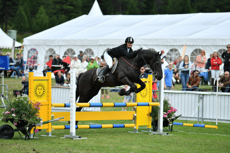 Mit einem guten Gefühl bin ich dann auch zur ersten Prüfung an Concours gegangen, was nicht gerade ein Erfolgserlebnis war, denn dort ist er dreimal am ersten Sprung hingestanden und somit waren wir sofort disqualifiziert. Nach der Prüfung sind wir auf unseren Springplatz gegangen. Dort stand ein Campingtisch und Urs sagte: “Tatj du willsch jetzt de Tisch springe!” Zuerst dachte ich mir nur ach du sch***, doch ich habe mir so fest eingeredet dass ich das will, dass wir schlussendlich problemlos ein-, zwei-, dreimal drübergesprungen sind. Urs schaute mich dann an und sagte: “Und was isch jetzt dis Problem am Concours?” Bis auf den letzten Tag wurden wir jeden Tag disqualifiziert immer aufgrund von Verweigerungen.