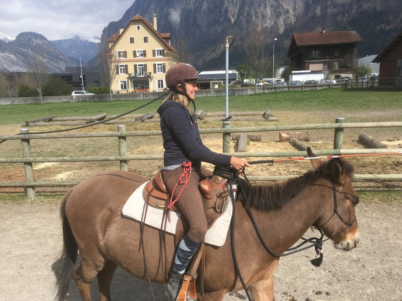 Am meisten profitiert habe ich davon, das ich mit so vielen verschiedenen Pferden arbeiten konnte. Ich hatte manchmal am Tag mit drei bis vier verschiedenen Pferde etwas gemacht, sei es vom Boden aus, im Sattel oder wir sind gefahren. Sogar ein Muli durfte ich reiten. Es ist sehr spannend auf die verschiedenen Pferdepersönlichkeiten einzugehen!