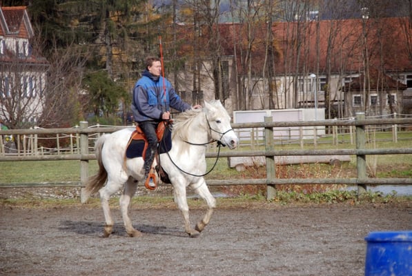 ich wollt mich mal melden und mich für die tolle Zeit bei Dir/Euch in der Schweiz bedanken. Mich für den L1-Kurs anzumelden war wohl eine der besten Entscheidungen, die ich je tun konnte. Es ist einfach unglaublich, was ich mit meinem Pferd in den letzten Wochen alles erreicht habe. Ich kann jetzt auf einmal alleine ausreiten, zu den Siloballen hinreiten, im Schritt (und nicht mehr im Zuckeltrab) nach Hause reiten... und das alles nur mit dem Knotenhalfter!!! Dabei musste ich aber auch schon fest stellen, dass es mir westenlich leichter fällt das gelernte umzusetzen, wenn ich alleine unterwegs bin. Wenn andere Mitreiter dabei sind, ist es irgendwie schwieriger...