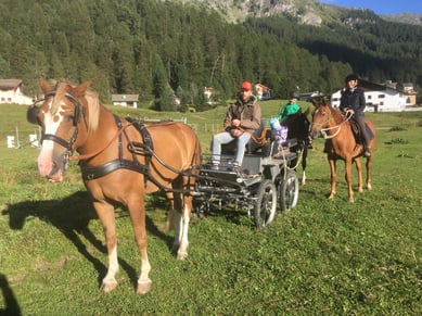 Das Wetter war uns hold und so hatten wir zum Abschluss eine wunderschöne Ausfahrt von Surlej bis nach St. Moritz und zurück. Weder Autos, Radfahrer, Wanderer aus Toiletten oder eng gesteckte Parcours stellten ein Problem für die Tiere dar. Mensch und Tier wurden zu einer Einheit verschmolzen und wir wagen zu behaupten, auch der Muli und Friibi genossen die Zeit und haben sehr viel dazu gelernt.